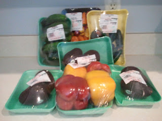 Then, I went to an Italian market in that area to look for cheap veggies. There, I hit pay dirt. Their prices on veggies were comparable to what I pay for veggies closer to home, but I found a metal cart full of discounted styrofoam trays of vegetables. Here's what I got: