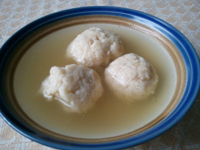 For those of you who have never had them, they're basically soup dumplings made from matzo meal (matzo ground finely), eggs, oil, and water. They're cooked separately, then added to the soup before serving. My kids love to have them on Friday night. The one down side is sometimes they get filled up on soup and don't want to have the main course.