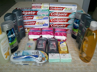 That's so awesome that you're donating all of that. Just last week we gave some friends of ours a bag full of goodies to include trial size deodorants and body wash, full size crest pro health rinse, 2 tubes of toothpaste, 2 flosses, and big bottle of contact solution. It was soo nice to be able to share with someone else. :)