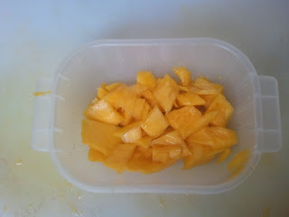 But today I harvested 37 mangoes from my tree! In the coming days I'll be cutting them up to make jams, sauces, and many more yummy items. So I thought I'd show you how to cut a mango.