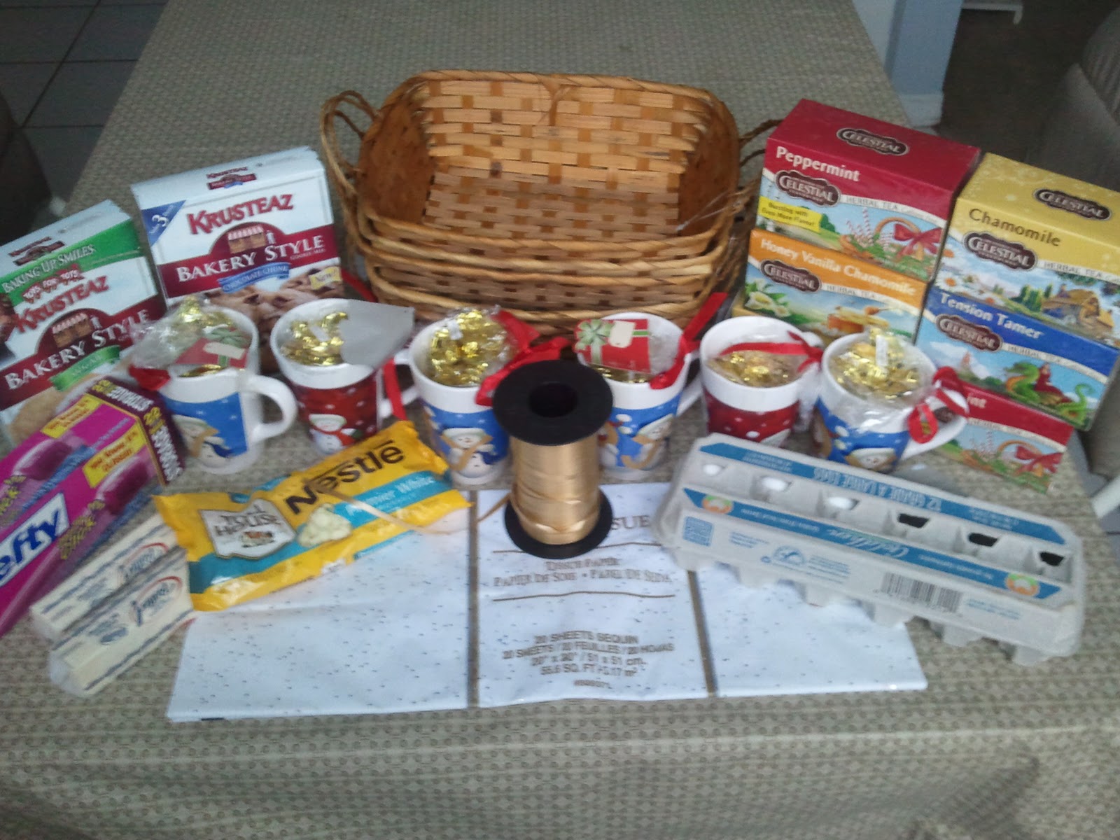 I also had leftover eggs, margarine, white chocolate chips, plastic bags, tissue paper, and ribbon. And all of the teachers loved their gifts!