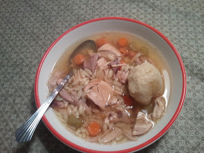 I make chicken broth in my crockpot regularly, with the bones leftover from roast chicken. But last week, I had a hankering for a soup with a little more in it. Like nice big chunks of chicken. Lots of vegetables. And some pasta. And a few matzah balls.