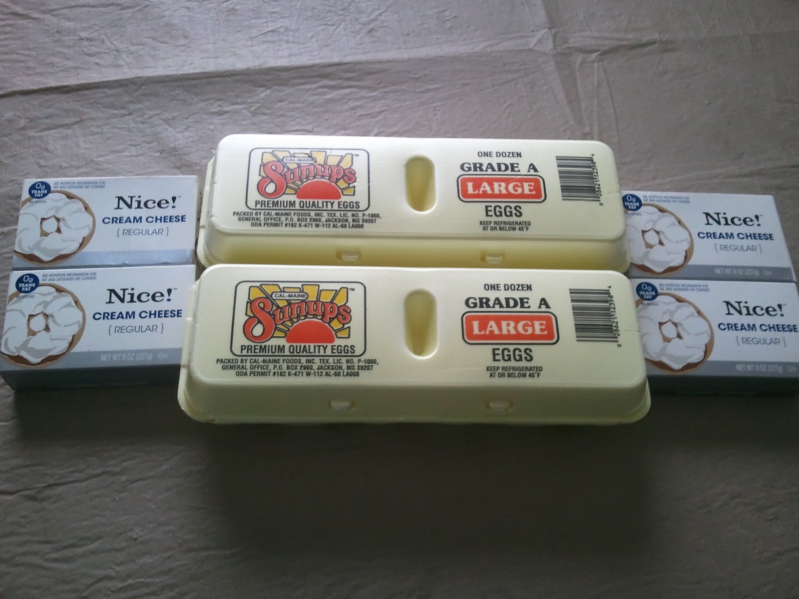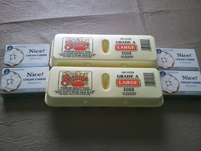 But I remembered that eggs and cream cheese were on sale for 99¢ each - cheaper than at ALDI, where eggs are $1.29 a dozen and cream cheese is $1.19 per 8-ounce brick. So I bought some of each. I'll make another trip to Walgreens later this week to buy my coupon items as well as more eggs and cream cheese.