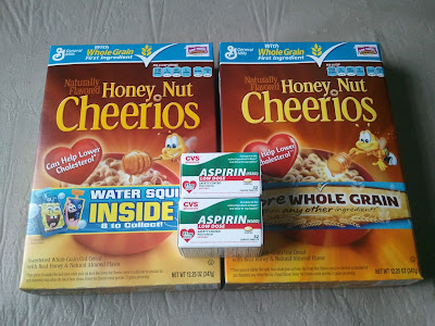 I got some Honey Nut Cheerios, which were 90¢ per box after coupons and ECBs. From what I understand, Honey Nut Cheerios is the most popular cereal in the United States. It certainly is the most popular cereal at my house! And I picked up some low-dose aspirin for my husband - we were almost out and he takes it daily. At buy one, get one 50% off, it wasn't the best deal, but sometimes you have to take what you can get.