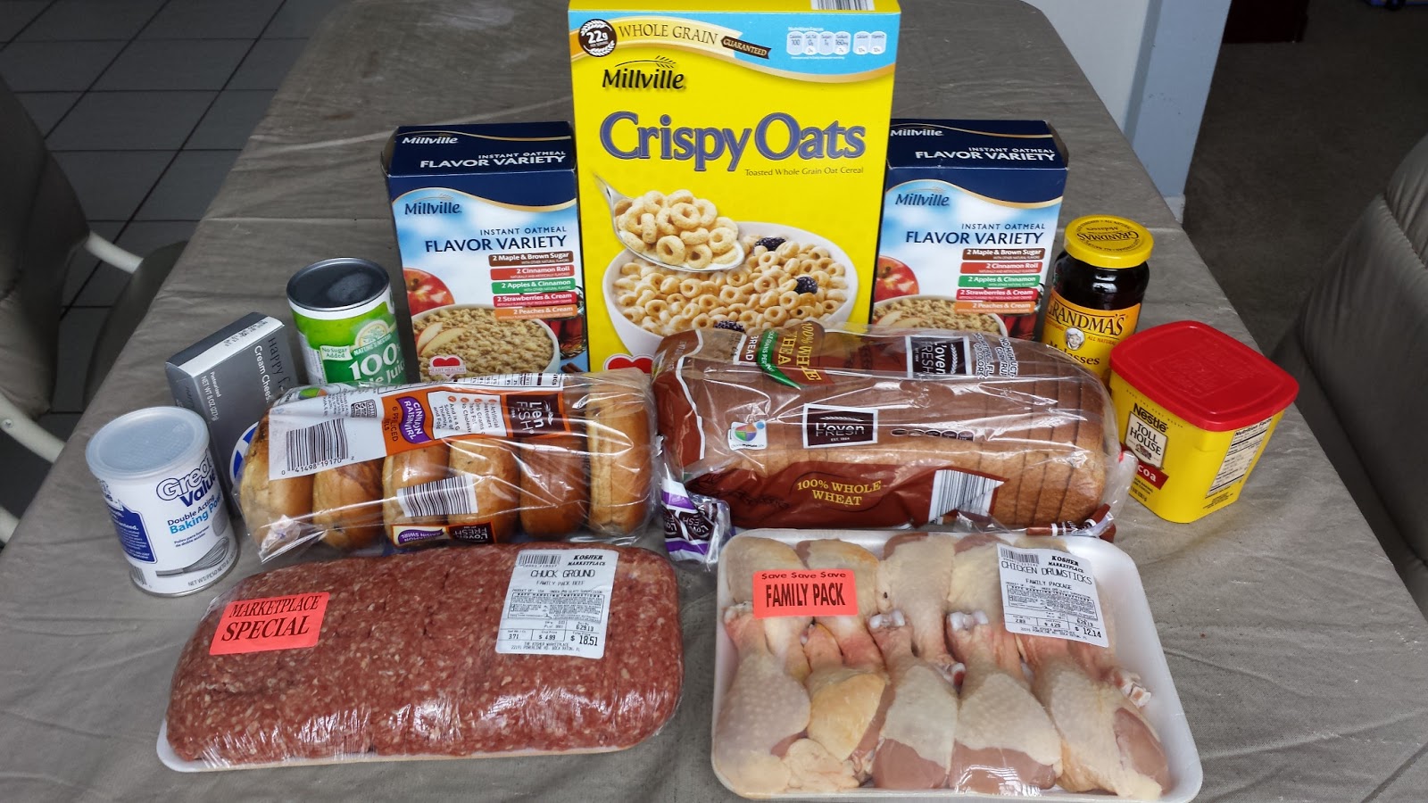 I'd add some sort of bread as well, like these rolls. I buy my bread at ALDI - plenty fresh, and lots cheaper than the grocery store!
